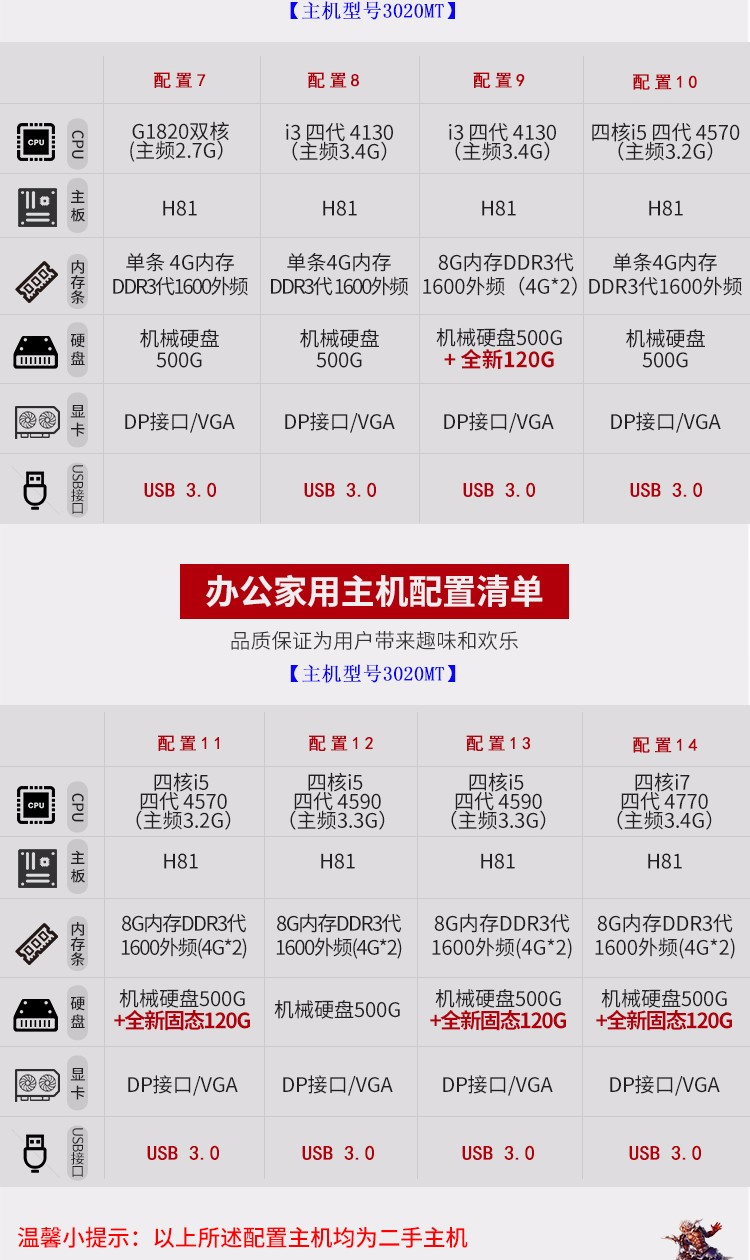 戴尔(DELL)台式电脑主机3020/3010MT.i3i5i7办公商用