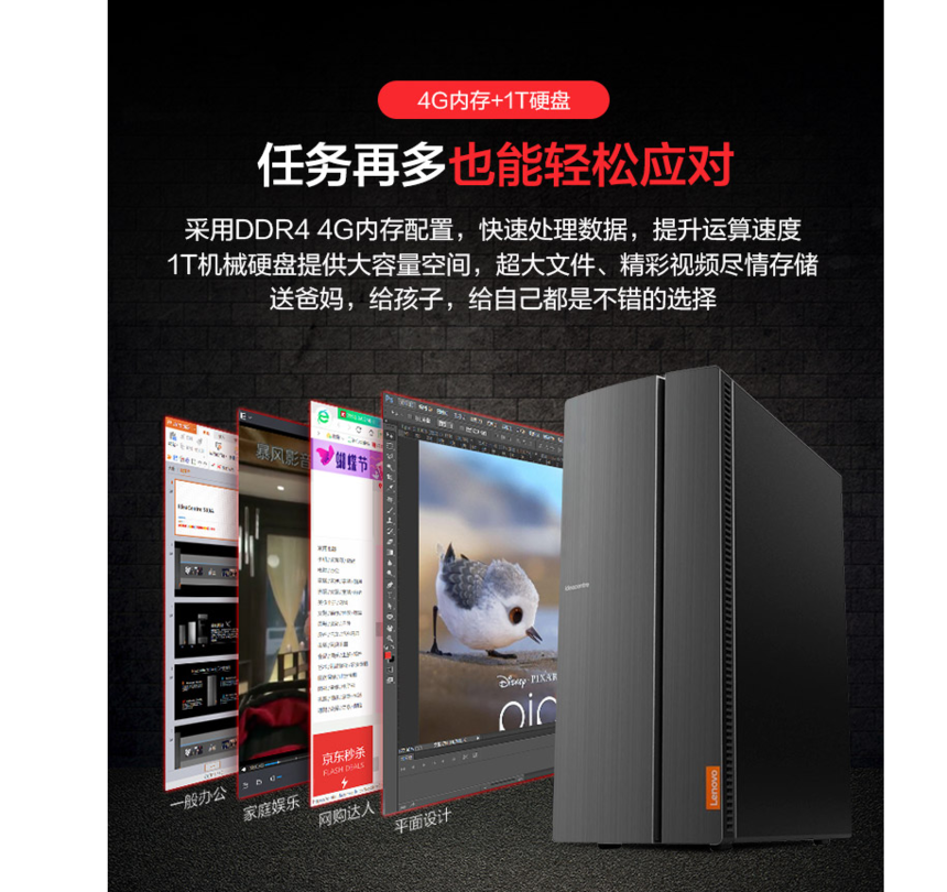 联想台式机电脑510A-15 G4900 A6-9500 企业办公 炒股 娱乐游戏台式电脑