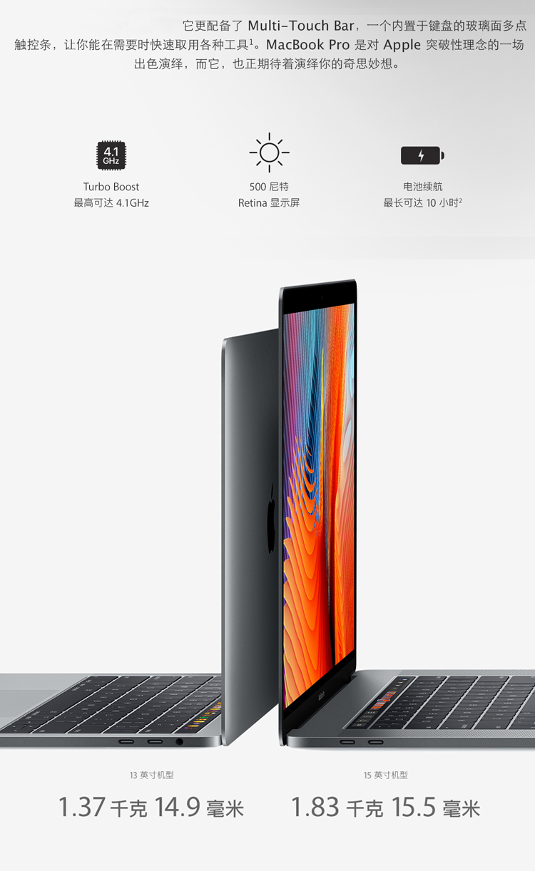 Apple/苹果 MacBook Pro MLVP2/MLH12 Iri550 Bar/ID 13英寸视网膜屏Forcetouch/TouchBar/Touch ID